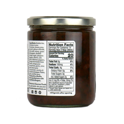 The combination makes for a beautiful and delicious summertime salsa. We start with wild Maine blueberries, and toss them in juicy diced tomatoes, onion, peppers, and jalapenos along with out secret spice blend! We mix in some of our house orange marmalades to marry all the flavors, add cilantro, and garlic, and finish with habanero peppers and a pinch of vinegar! Try topping this over some grilled chicken, pork tenderloin, or lamb chops for some deliciously unique flavors!